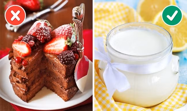 Ăn đồ ngọt trước khi đi ngủ. Ăn trước khi đi ngủ không chỉ hại cho cơ thể mà còn hại cho giấc ngủ, đặc biệt là khi thực phẩm có chỉ số glycemic cao khiến tăng lượng hormone cortisol trong cơ thể. Nó sẽ có tác dụng 5 tiếng đồng hồ nên bạn nên dừng ăn pizza, bánh, khoai tây ít nhất 5 tiếng trước khi đi ngủ và thay thế bằng thực phẩm nhẹ nhàng hơn như sữa chua, thịt nạc..