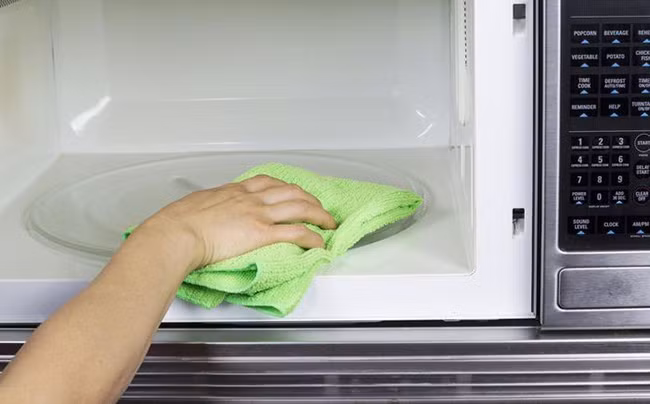 Lò vi sóng thường bị ám mùi cháy và đồ ăn, nếu không khử mùi này triệt để, các món ăn khác cũng sẽ bị ảnh hưởng. Bạn cần chuẩn bị một tô nước sạch và vỏ cam, bạn có thể dùng vỏ chanh, quýt, bưởi đều được. Dùng dao cắt vài đường trên bề mặt vỏ sau đó cho vào tô nước và để vào lò vi sóng quay khoảng 2 phút. Khi hết 2 phút, bạn không nên mở nắp ra ngay mà hãy để khoảng 5 phút để mùi hôi được khử hoàn toàn.