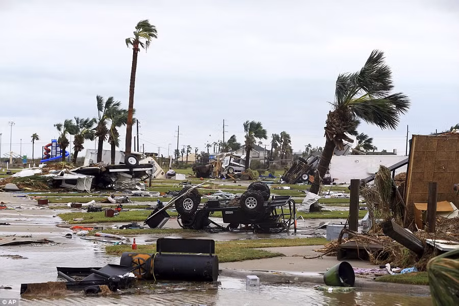 Sức gió mà Harvey thổi vào Taxas là 209km/h, một số ngôi nhà và cơ sở kinh doanh đã bị phá hủy, 338.000 người phải chịu cảnh mất điện.