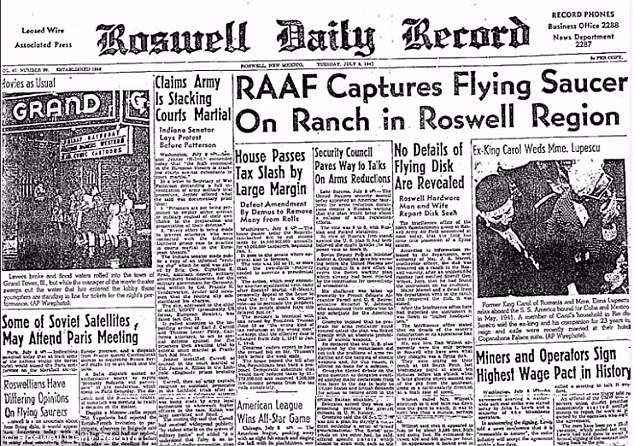 Những xác người ngoài hành tinh đã được phục hồi và được quân đội Hoa Kỳ khám phá, nhưng các cơ quan chức năng Hoa Kỳ đã che giấu vụ việc này. Những quan chức quân đội đã phát hành một thông cáo báo chí, nó có nội dung: "Nhiều tin đồn về đĩa bay đã trở thành hiện thực ngày hôm qua khi viên tình báo của Nhóm Bomb thứ 509 thuộc Không lực 8, Roswell Army Air Field, đã may mắn được sở hữu một chiếc đĩa bay."