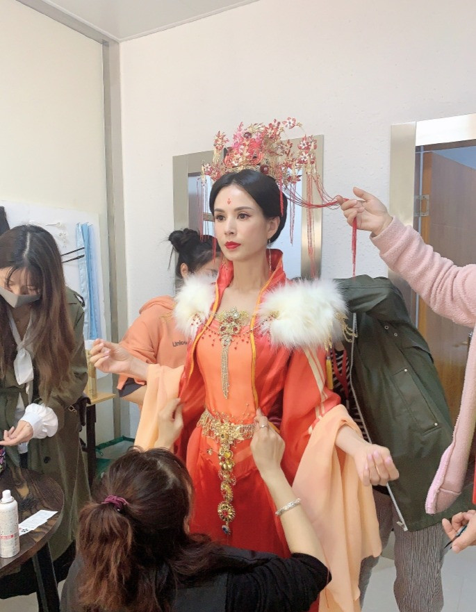 Cách đây không lâu, Lý Nhược Đồng còn khiến dân mạng "dậy sóng" vì loạt ảnh cô hóa tân nương cổ trang xinh đẹp. Đi kèm với những bức ảnh này, nữ diễn viên chia sẻ: "Chưa bao giờ chịu để cho người khác mang giày cho mình. Tuy nhiên hôm nay phải hóa trang để quay phim, thời gian gấp rút, tình huống khẩn cấp nên tôi đành phải thỏa hiệp. Làm tân nương cổ trang không hề dễ chút nào. Mọi người hài lòng với tạo hình này chứ?".