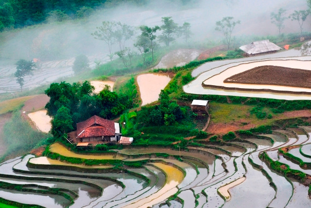 Mặc dù công việc khai đất và dẫn nước cho ruộng bậc thang nơi đây có khó khăn hơn, nhưng bù lại, ngoài những vụ mùa bội thu, những người dân nơi đây còn kiến tạo nên một kỳ quan thiên nhiên kỳ vĩ. Đó là những mảng màu đa sắc của ruộng bậc thang mùa nước đổ, đẹp tựa một bức bích họa giữa sườn núi cao trùng điệp.n