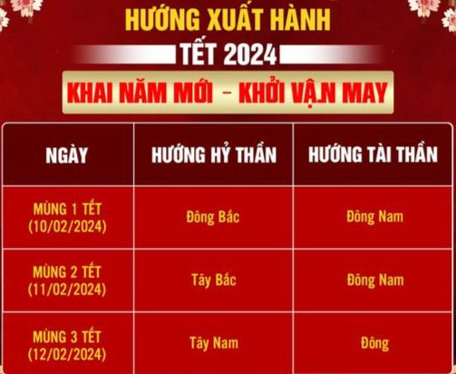 Xuất hành ngày mùng 3 Tết (tức ngày 12/2/2024 dương lịch)