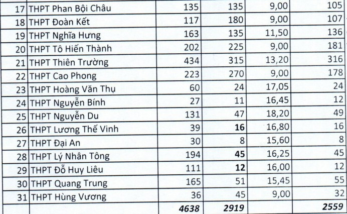 Sở GD&ĐT lưu ý: Chỉ tiêu các trường: Nguyễn Trường Thúy, Lương Thế Vinh, Đỗ Huy Liêu, Lý Nhân Tông có thay đổi so với đã công bố đợt 1 vì một số học sinh rút hồ sơ.