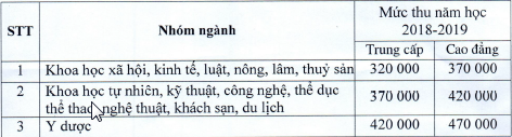 Học phí đối với các cơ sở giáo dục công lập đào tạo đại trà trình độ trung cấp, cao đẳng chưa tự đảm bảo kinh phí chi thường xuyên và chi đầu tư (đơn vị tính: đồng/tháng/học sinh,sinh viên):