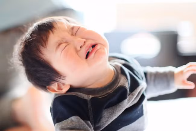 2. Đợi bé khóc 3-4 phút, thì bạn đứng thẳng, mặt nghiêm với bé và nói: “Mẹ không thích con làm điều này. Thật sự điều con đã làm làm mẹ không vui tí nào”.