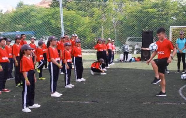Tất cả các em nhỏ rất hào hứng tham dự lớp học bóng đá được hướng dẫn bởi các ngôi sao của CLB Bóng đá Hà Nội: Quang Hải, Loris Arnaud và Álvaro Silva.