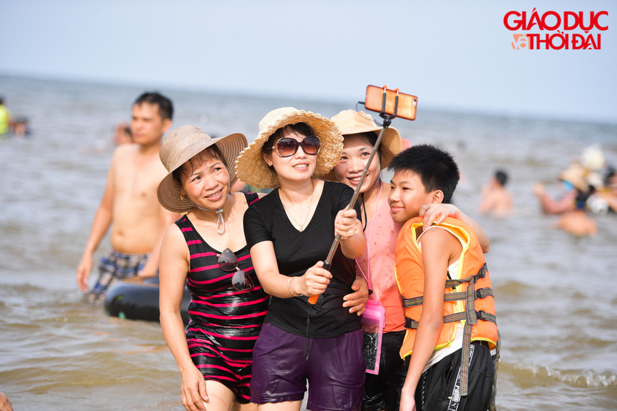 | Cũng là dịp cuối tuần, rất nhiều nhóm bạn, gia đình chọn biển là nơi đến để giải nhiệt |
