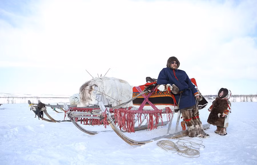 Các gia đình người Nenets sống theo lối thiên di tự nhiên của tuần lộc, lang bạt khắp địa hình phẳng lặng, trên những dòng sông băng hoang vu lạnh giá.