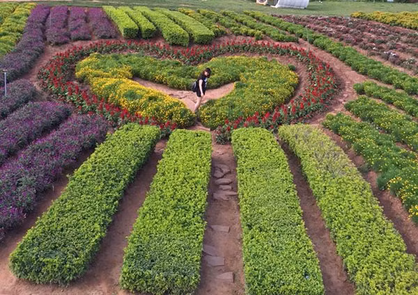 Đặc biệt, ở đây còn có vườn hoa trái tim được tạo bởi nhiều loài hoa với muôn màu rực rỡ, khiến cho các bạn trẻ thích thú, đắm mình trong vẻ đẹp không chỉ hoang sơ mà còn rất thơ mộng, lãng mạn của thiên nhiên vùng Tây Bắc.