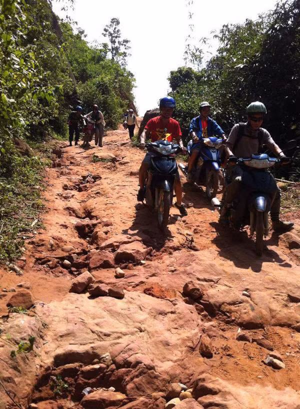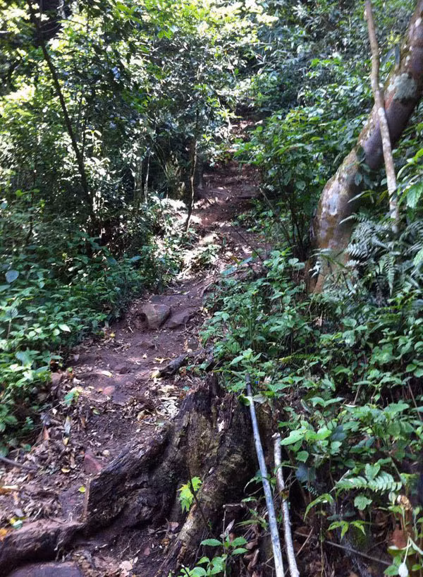 Con đường lên đỉnh chỉ có dốc, rừng âm u không ánh mặt trời, nhiều đoạn đường đất gồ ghề, mấp mô, vực núi khá hiểm trở và nguy hiểm đòi hỏi người đi phải thật cẩn thận, đặc biệt vào những ngày trời mưa.