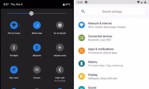 Với Android P, Google sử dụng màu sắc nhạt hơn và áp dụng các góc bo tròn ở mọi nơi có thể. Thanh thông báo trạng thái giờ trông ưa nhìn hơn với màu xanh dịu mắt, trong khi phần cài đặt màu sắc nhưng không rối. Theo Cnet, Android P đang hướng tới một giao diện thẩm mỹ hơn.
