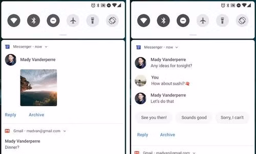 Android đang đi đầu trong việc xử lý thông báo và với Android P, khoảng cách mà nó tạo ra so với iOS càng được nới rộng. Chẳng hạn ngay trên thanh thông báo, Google sẽ đưa ra gợi ý nhanh để người dùng có thể trả lời nhanh.