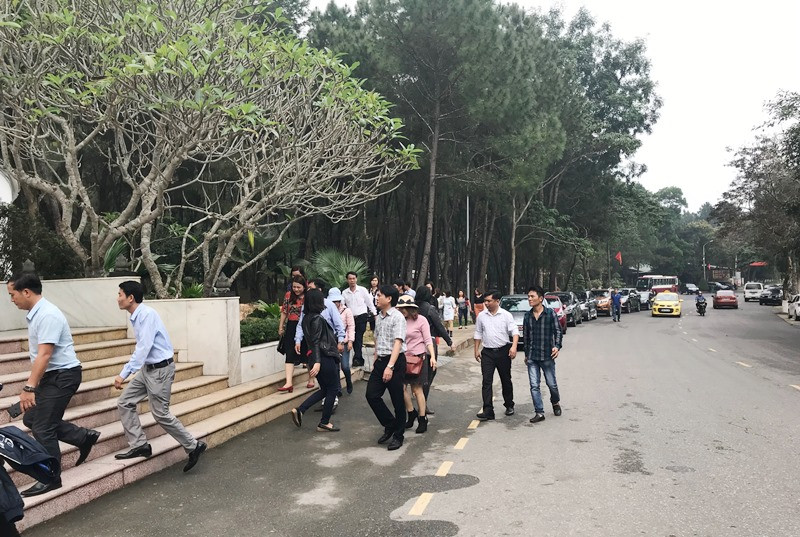 | Rất nhiều đoàn du khách nước ngoài đến thắp hương, tham quan tại Di tích lịch sử Ngã ba Đồng Lộc. |