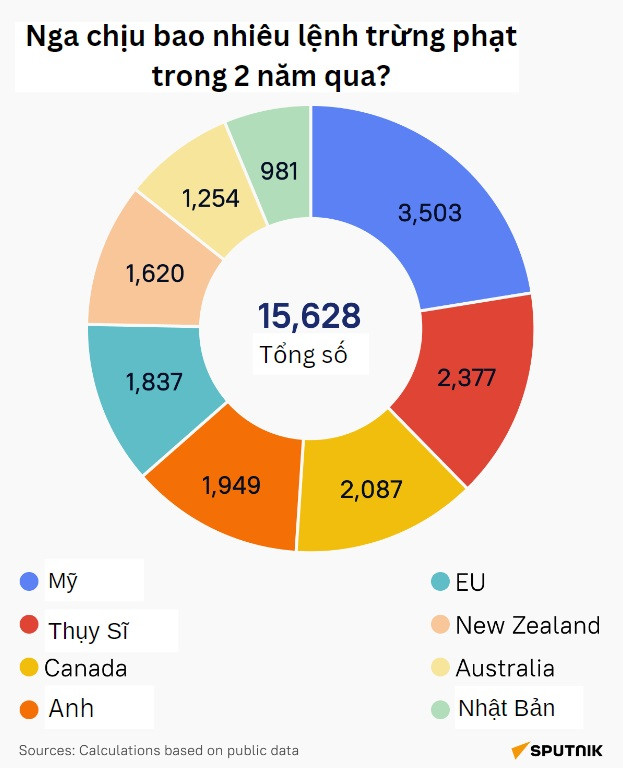 Từ năm 2022, Nga đã hứng chịu hơn 15.000 lệnh trừng phạt trong nhiều lĩnh vực khác nhau.