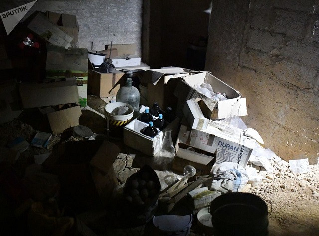 “Các chất hóa học được phát hiện như thiodiglycol và diethanolamine rất cần thiết để tạo ra sulfur và nitrogen. Ngoài ra, một ống có chlorine, tương tự với chất mà các chiến binh dùng để dàn dựng vụ tấn công hóa học, cũng được tìm thấy. Việc này có thể kết luận rằng phòng thí nghiệm này đã được các nhóm vũ trang bất hợp pháp để tạo ra các chất độc” – ông Rodionov nói.