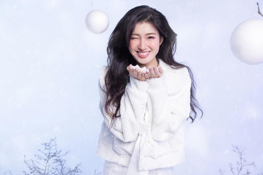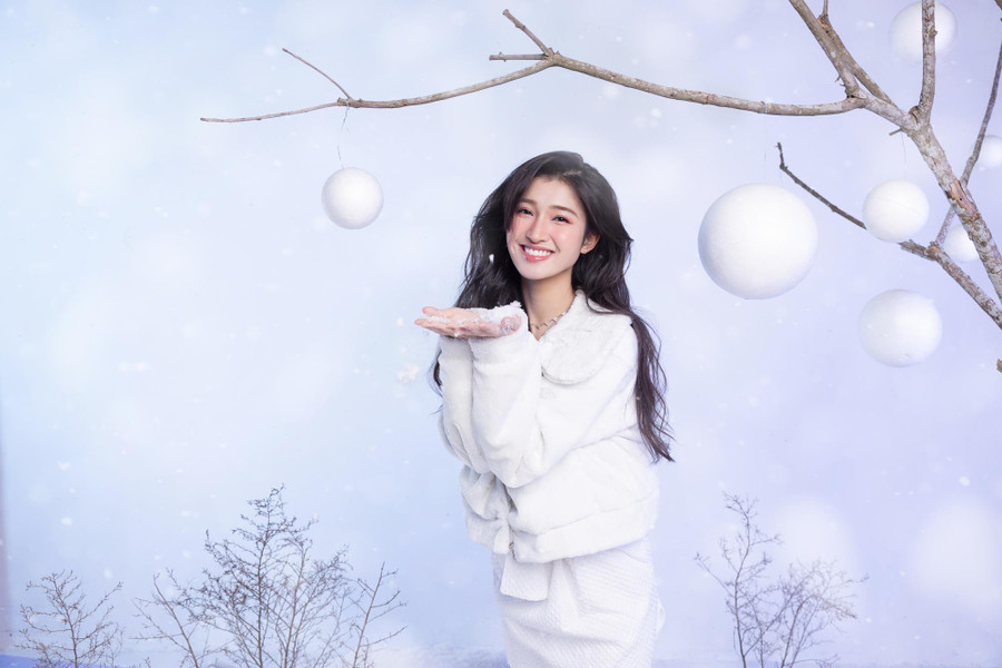 | Nàng hậu sinh năm 2002 khoác trên mình bộ trang phục mùa đông vô cùng trẻ trung, năng động trong không gian tràn ngập tuyết rơi lãng mạn. |