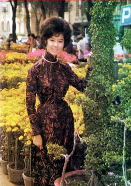 Thiếu nữ Sài thành mặc áo dài du xuân. Hoa cúc vàng là một trong những loài hoa đã song hành cùng mùa Xuân Sài Gòn nhiều thập kỷ nay.