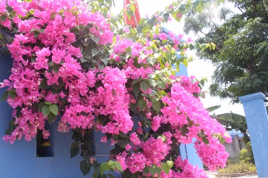 Hoa giấy bung nở tuyệt đẹp trên đường trước trụ sở cơ quan đại diện Cảng vụ Hàng hải Quảng Trị tại Cồn Cỏ, hay trước khuôn viên Nhà khách Ban Chỉ huy Quân sự huyện đảo Cồn Cỏ….