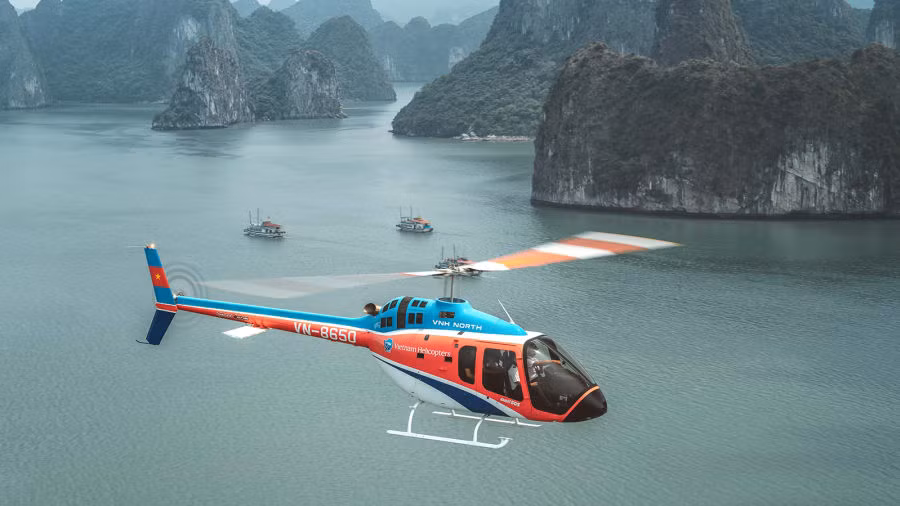Các chuyến bay khởi hành từ đảo Tuần Châu, cách Hà Nội khoảng 170 km. Máy bay trực thăng phục vụ việc ngắm cảnh này có thể chở theo 3 khách du lịch trên mỗi chuyến; đồng thời, còn được trang bị ghế ngồi hướng về phía trước và cửa sổ lớn, mang đến tầm nhìn tuyệt vời ra Vịnh Hạ Long.