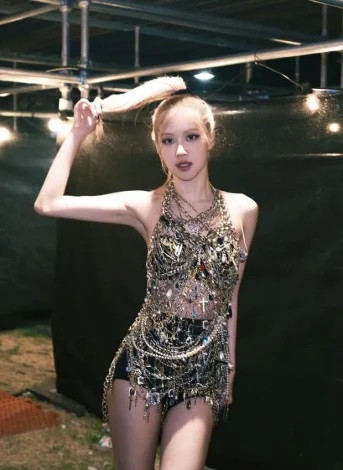 Xuyên suốt tour diễn vòng quanh thế giới Born Pink, Rosé có vẻ ưa chuộng những món đồ có dây đai, cổ yếm, giúp tôn lên xương quai xanh quyến rũ và dáng người thanh mảnh.