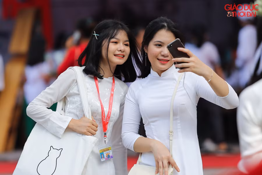 Đây cũng là dịp các bạn nữ được diện trên mình bộ áo dài trắng tinh khôi truyền thống. Nhìn loạt khoảnh khắc các nữ sinh rạng rỡ trong tà áo dài, nhiều người không khỏi "thương nhớ", ao ước một lần quay trở lại thành học sinh để hòa mình vào không khí ngày khai giảng.