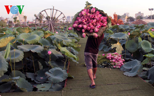 | Thu hoạch hoa sen. |