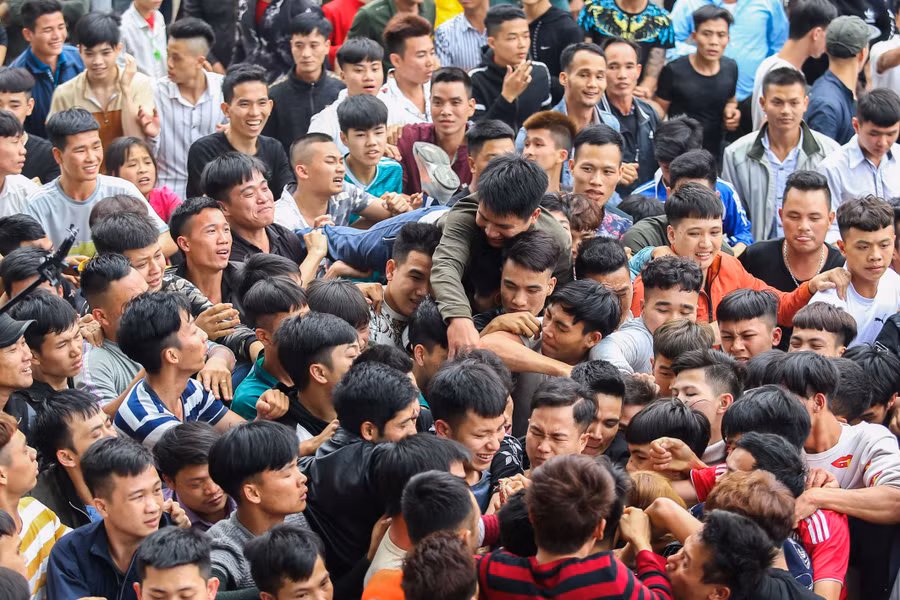 | Theo 1 cụ trong làng cho biết, nhiều gia đình mong muốn có con trai nên đã nhờ nhiều họ hang đến để giành chiếu về cho nhà, nhiều người còn thuê người đến để giành chiếu |