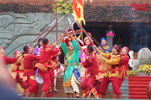 | Sau phần đọc Trúc văn, lãnh đạo Quận Đống Đa chính thức tuyên bố khai hội. Người dân được xem lại một tiết mục do các diễn viên Nhà hát Tuồng Trung ương thể hiện. |