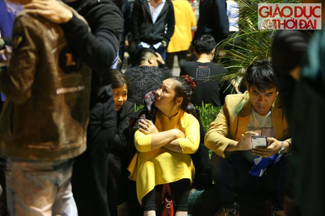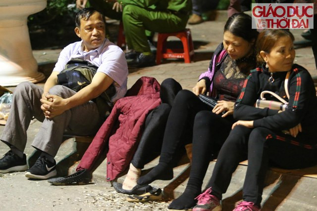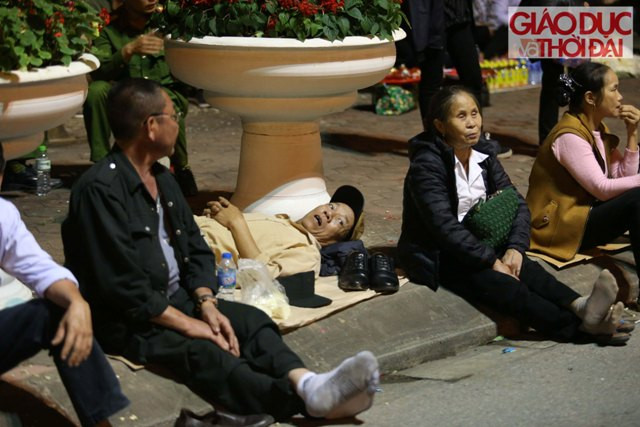 | Phía bên ngoài rào sắt ngăn cách với khu vực sân Đền, hàng trăm người cũng đã ngồi kín, mắt nhìn vào bên trong. Nhiều người do quá mệt mỏi nên tranh thủ ngủ gục. Mùi hương khói, mùi mồ hôi váng vất không ngăn cản được du khách háo hức đợi chờ. |