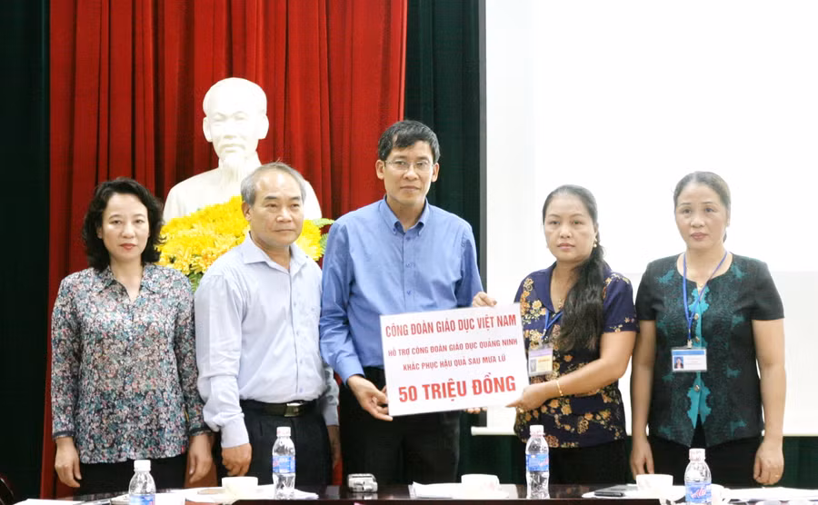 - Công đoàn Giáo dục Việt Nam đã ủng hộ 50 triệu đồng cho Công đoàn Giáo dục Quảng Ninh khắc phục hậu quả sau trận mưa lũ.