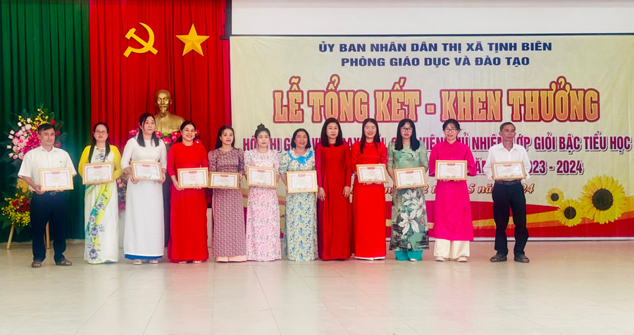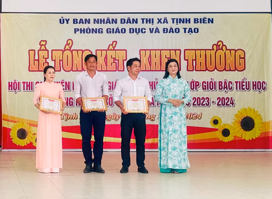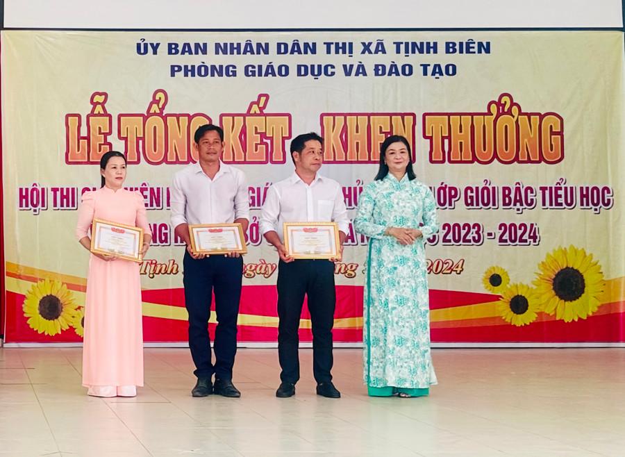Phòng Giáo dục và Đào tạo thị xã Tịnh Biên (tỉnh An Giang) vừa tổ chức Lễ tổng kết trao khen thưởng Hội thi giáo viên dạy giỏi tiểu học, Hội thi giáo viên chủ nhiệm lớp giỏi tiểu học và Hội thi chủ nhiệm lớp giỏi THCS cấp thị xã năm học 2023 – 2024.