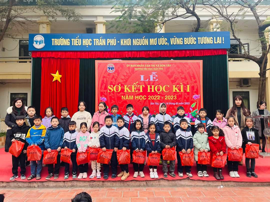 |   Trường Tiểu học Trần Phú - Thị xã Sơn Tây tổ chức sơ kết học kỳ 1 và trao quà Tết cho học sinh.  |