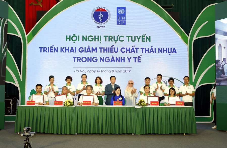 Ngay tại Hội nghị, lãnh đạo một số đơn vị trực thuộc Bộ Y tế: Bệnh viện Bạch Mai, Bệnh viện Việt Đức, Bệnh viện K, Viện Sức khoẻ nghề nghiệp và Môi trường và Trường Đại học Y tế công cộng đã ký cam kết về triển khai giảm thiểu chất thải nhựa với Bộ trưởng Bộ Y tế.