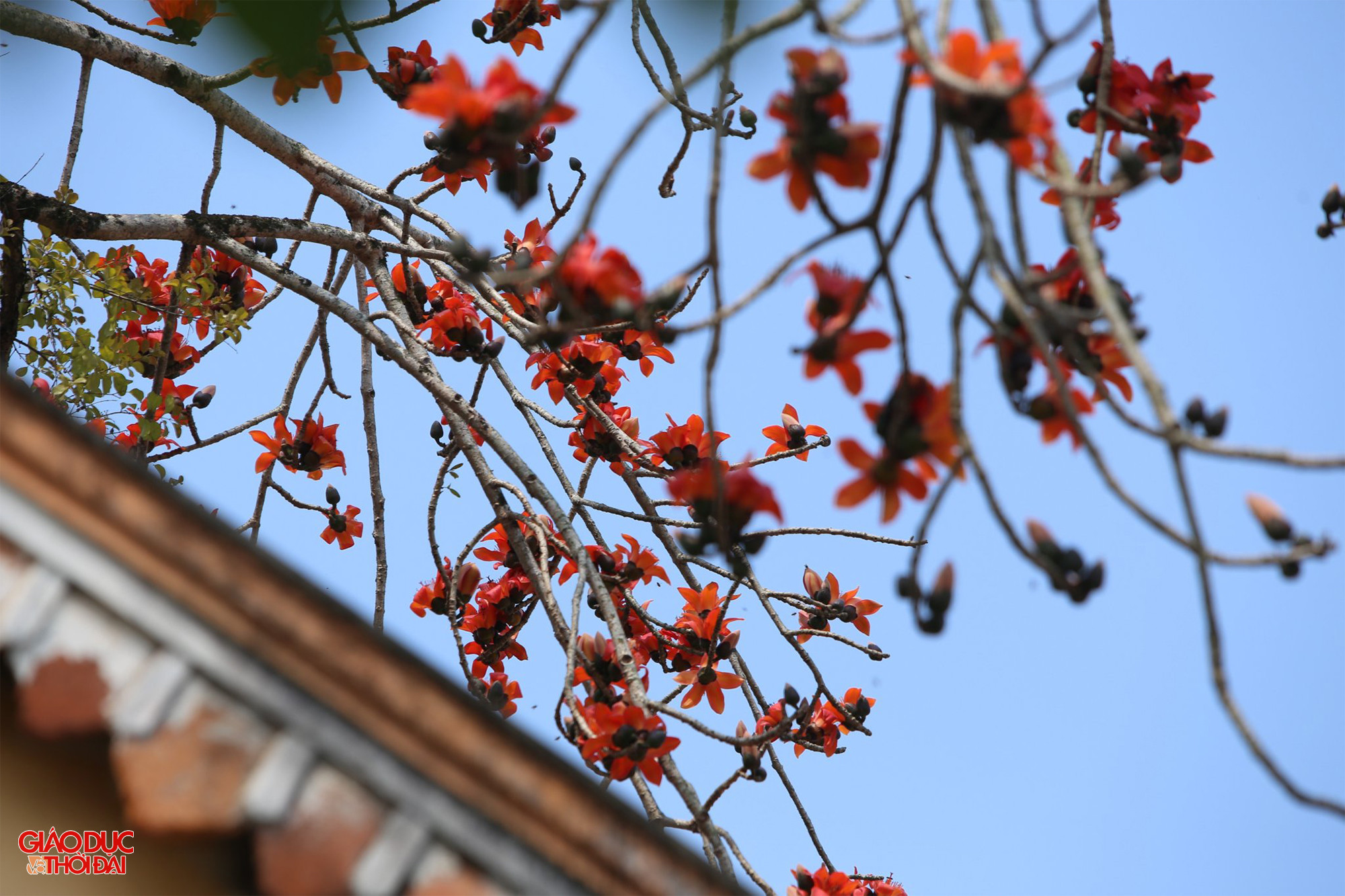 | Cây hoa gạo cổ thụ nằm cạnh trụ sở UBND xã Thanh Nho (huyện Thanh Chương, Nghệ An) nở hoa đỏ rực rỡ, tô điểm cho một vùng quê. Ảnh: Phạm Tâm. |