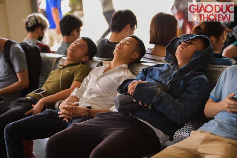 | Tại nhà chờ trong bến xe Mỹ Đình nhiều hành khách tranh thủ nghỉ để lấy sức và đợi xe. |