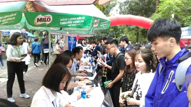 Chương trình Ngày hội việc làm diễn ra tại khu vực Nhà văn hoá, Trường ĐH KTQD, còn có các hoạt động như: Doanh nghiệp tự giới thiệu; Toạ đàm nghề nghiệp…
