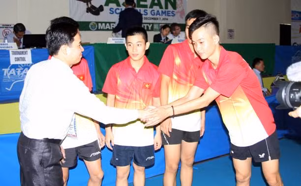 Ông Vũ Mạnh Cường – huấn luyện viên đội bóng bàn nam - vui mừng nói: “Trước khi lên đường tham gia tranh tài ở 6th ASEAN Schools Games, chúng tôi không nghĩ đến việc giành được huy chương, bởi tất cả các vận động viên đều là những gương mặt mới và lần đầu được tham dự.