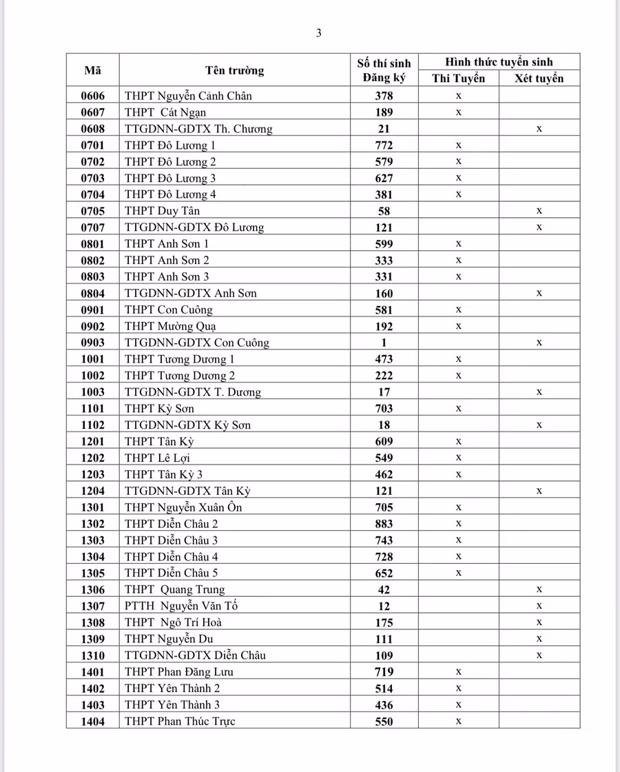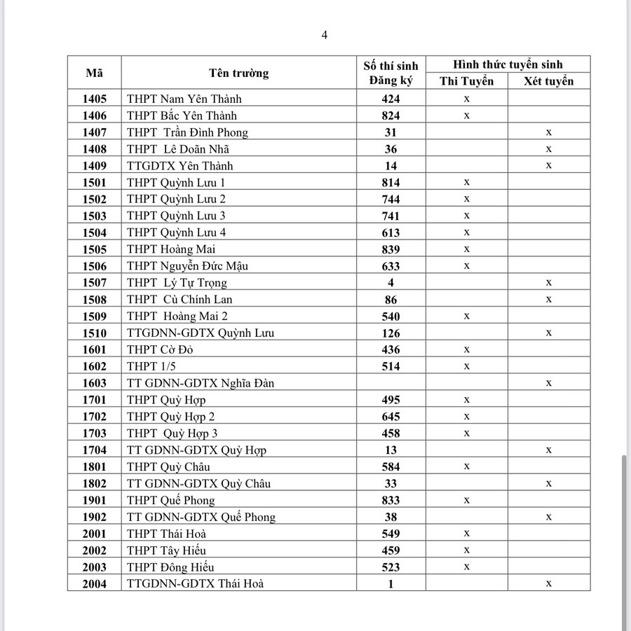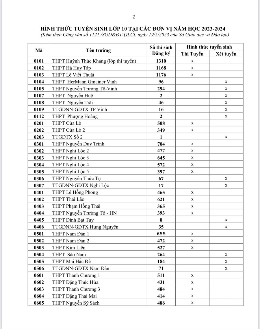Danh sách thống kê hình thức tuyển sinh vào lớp 10 của các đơn vị, trường học tỉnh Nghệ An năm học 2023-2024: