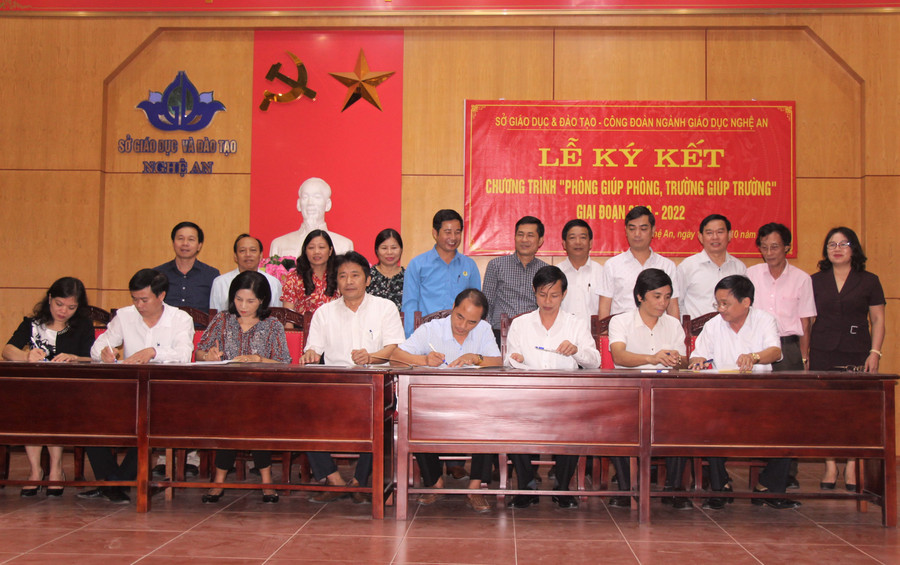 Sáng 10/10, Công đoàn Giáo dục Nghệ An phổi hợp với Sở GD&ĐT tổ chức Lễ ký kết phát động phong trào “Phòng giúp phòng, trường giúp trường” giai đoạn 2019-2022.