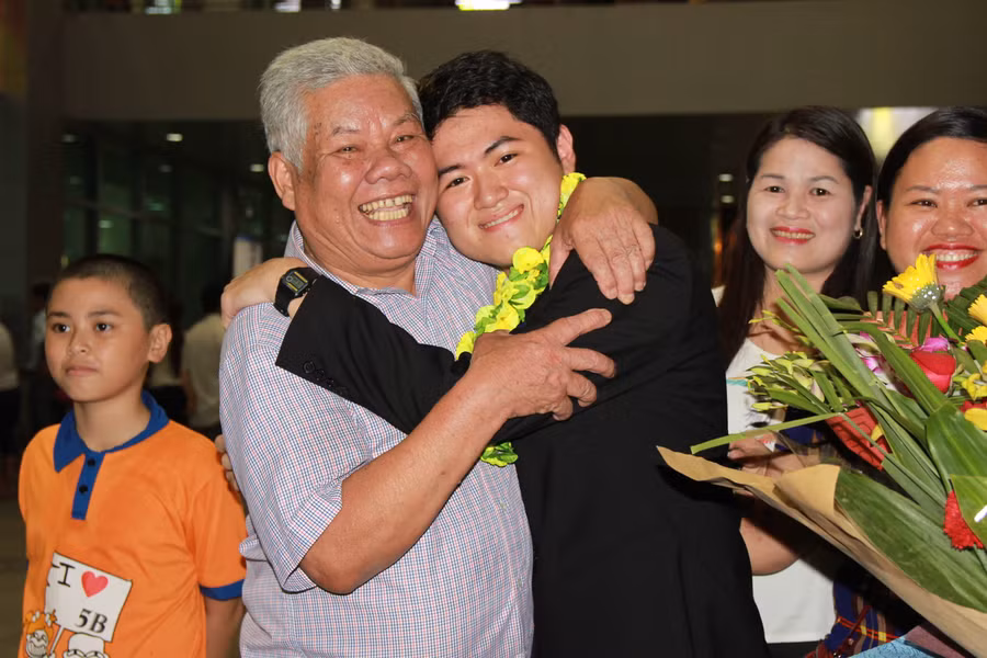 Trong vòng vây của những cánh tay ôm, hoa tươi, lời chúc mừng từ thầy cô, gia đình, bạn bè, em Trần Hữu Bình Minh xúc động nói: “Thấy mọi người chào đón em và đoàn dự thi trở về nồng nhiệt như thế này em rất vui mừng. Giành được huy chương bạc kỳ thi Olympic Vật lý châu Á là vinh dự của em, nhưng em muốn dành tặng phần thưởng này đến thầy cô, ông bà, bố mẹ và các bạn đã luôn động viên, giúp đỡ em trong suốt quá trình học tập”.