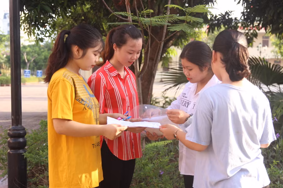Hình ảnh thí sinh tại điểm thi THPT Nguyễn Xuân Ôn (huyện Diễn Châu)