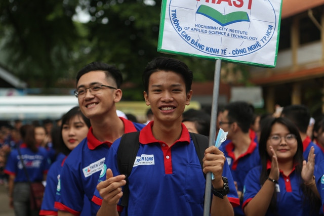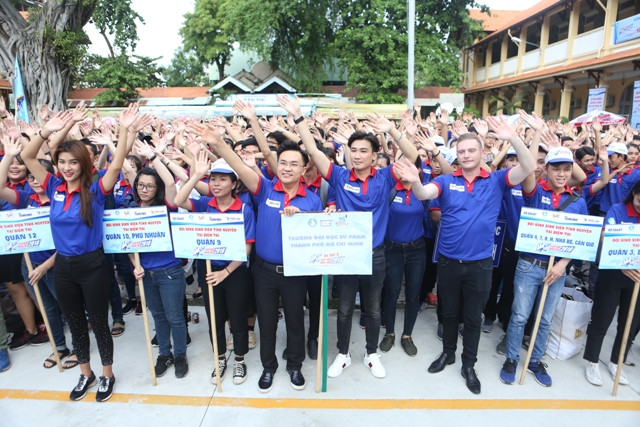 Sáng nay, nhiều nghệ sĩ như Chí Thiện, Kyo York, Kim Tuyến đã cùng sống trong không khí sôi động cùng hàng ngàn sinh viên tình nguyện trong ngày Lễ ra quân tại trường Đại học Sài Gòn: