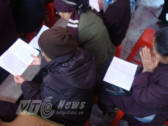 Sư thầy mở tấm bùa đọc rì rầm vài câu, rồi gấp lại, đặt lên bàn thờ. Các Phật tử ngồi dưới chiếu, vây quanh giường ông D., tràn cả ra ngoài phòng khách.