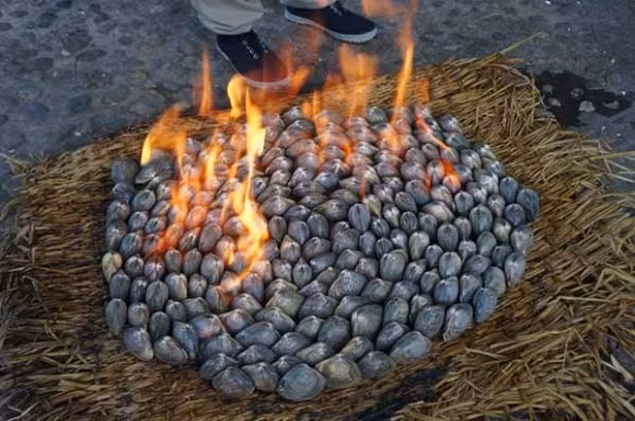 Nghêu nướng xăng - đặc sản Triều Tiên khiến nhiều người tò mò.