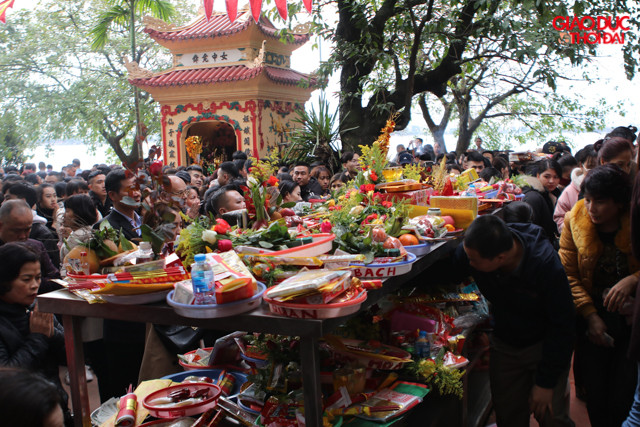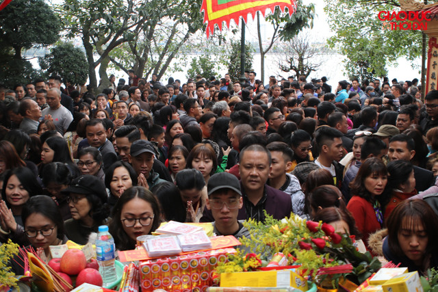 | Về trưa, lượng người đến cầu may tăng lên nhanh chóng. Bên cạnh cầu may mắn, đi phủ Tây Hồ cầu tài lộc cũng là mục đích của nhiều du khách khi đến nơi đây. |