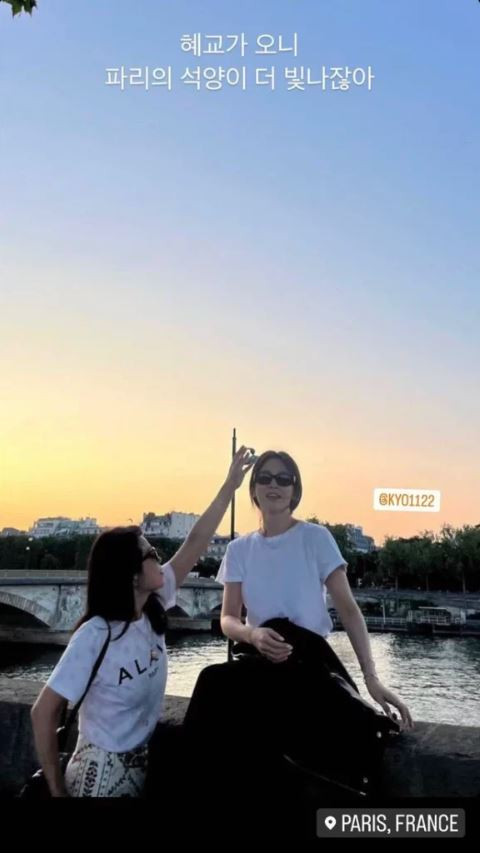 Ở bức ảnh khác, một người bạn của Song Hye Kyo ngọt ngào viết: “Hoàng hôn ở Paris càng rực rỡ hơn khi có Hye Kyo ở đây”.