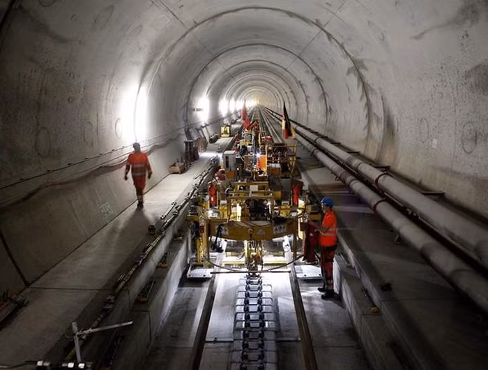 Đường hầm Gotthard đượckhởi công xây dựng từ năm 1999 xuyên qua dãy núi Alps ở Thụy Sĩ với chiều dài 57km và trở thành đường hầm dài nhất thế giới