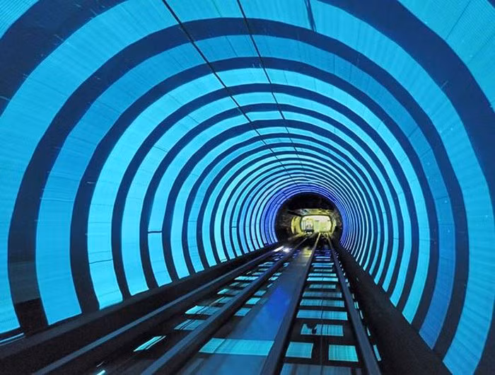 Tuy chỉ dài 646,7 m nhưng bù lại đường hầm có cảnh quan đẹp mắt bởi một công ty địa phương đã tạo hiệu ứng âm thanh và hình ảnh bên trong, thu hút được một lượng lớn khách du lịch