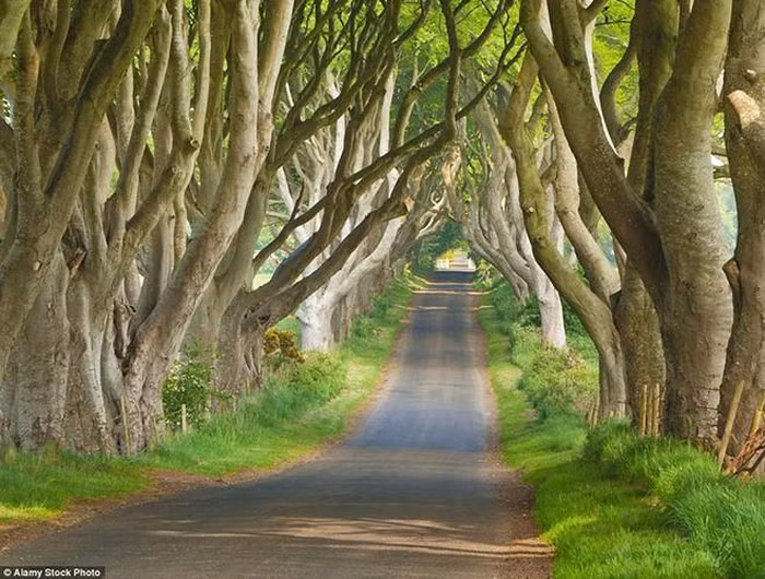 “Đường hầm cây sồi” ở Antrim là một trong những địa điểm du lịch hấp dẫn nhất tại Bắc Ireland. Du khách thường tới đây vào lúc hoàng hôn để ngắm cảnh cũng như chụp những bức ảnh đẹp khi ánh nắng xuyên qua hàng cây
